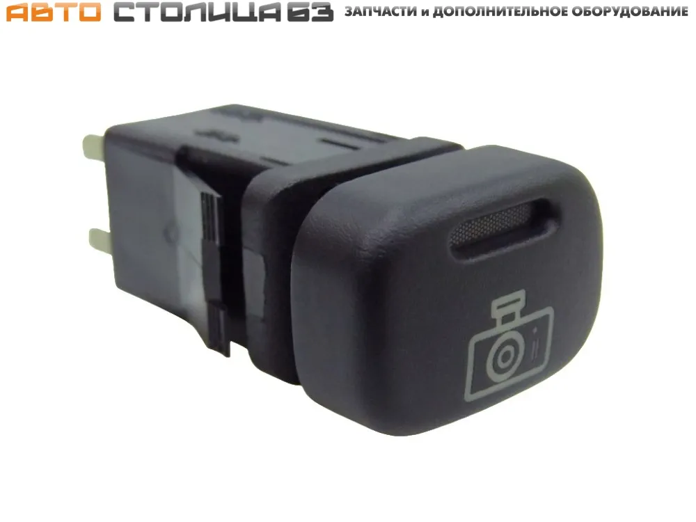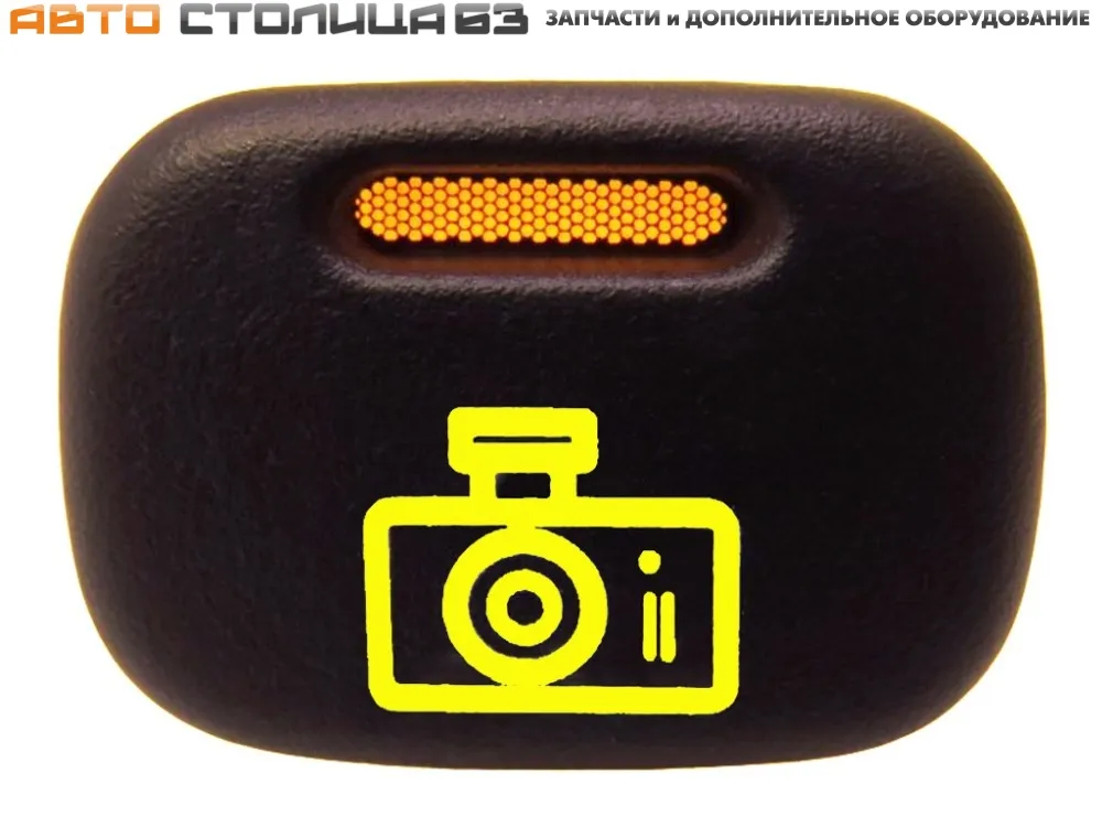 Кнопка видеорегистратора для автомобилей ВАЗ 2113-2115, Шевроле Нива, Нива Трэвел. Производитель РадиоДеталь, Зубова Поляна. Цвет индикатора желтый, цвет иконки зеленый. Кнопка с фиксацией.