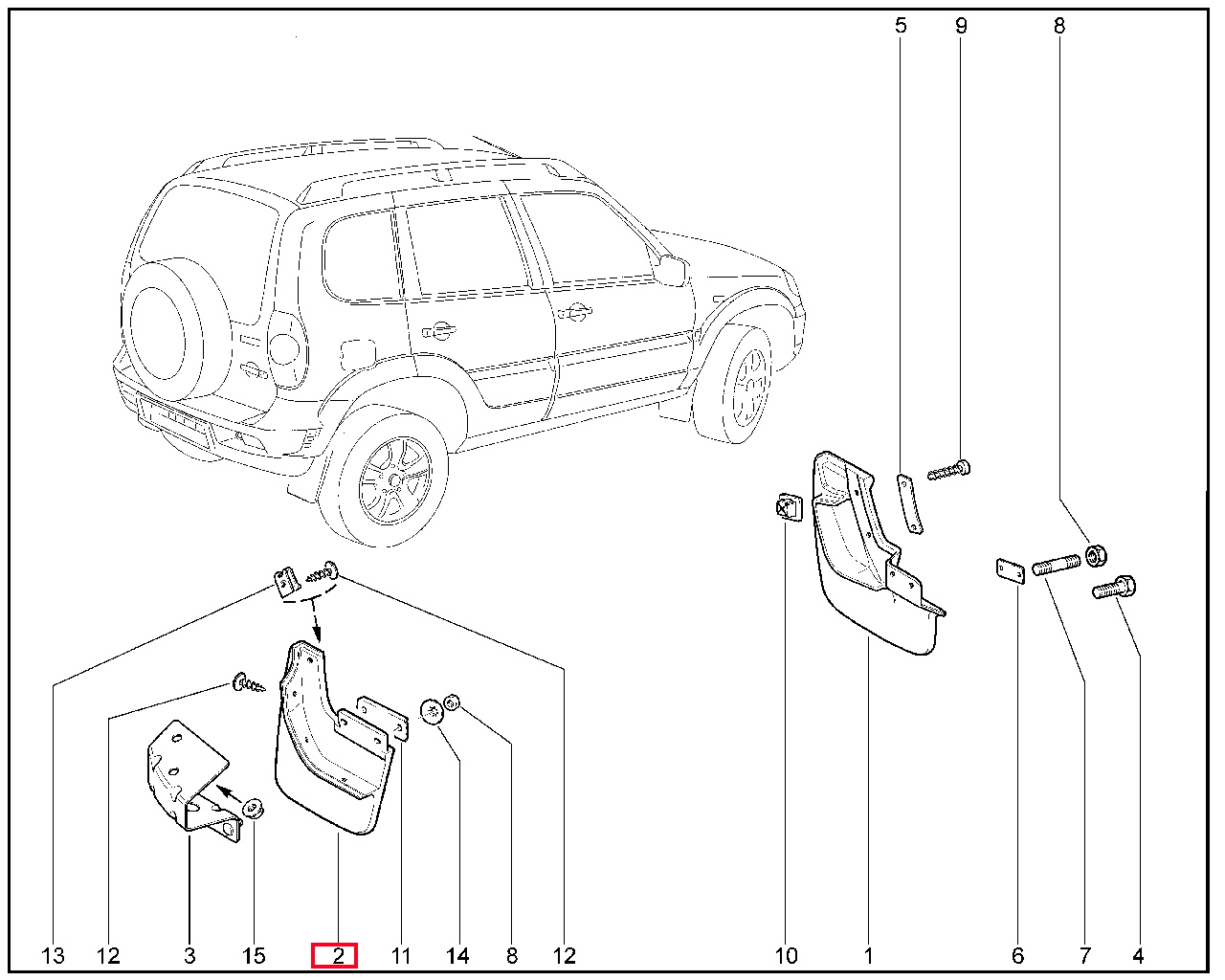Брызговики задние для Лада Нива Тревел.