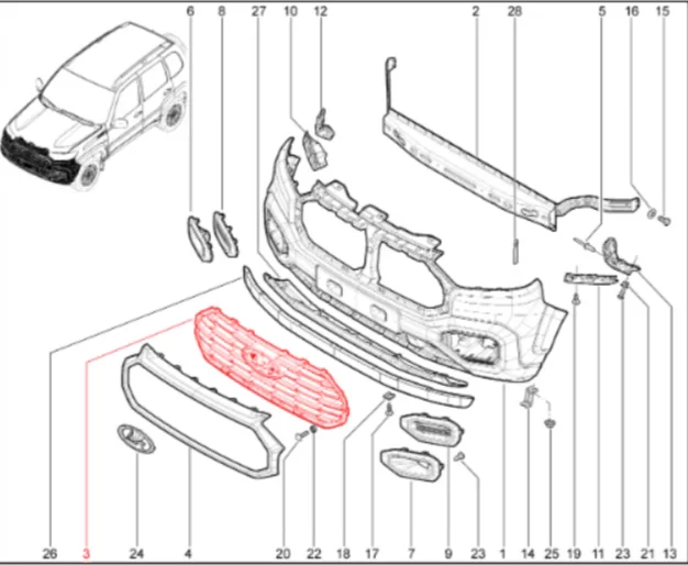 Штатная оригинальная решетка радиатора для Lada Niva Travel 1.8л.