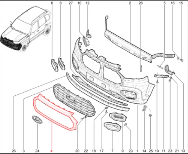 Штатная оригинальная накладка переднего бампера (решетки радиатора) для Lada Niva Travel 1.8л.