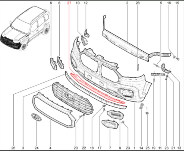 Штатная оригинальная накладка переднего бампера нижняя для Lada Niva Travel 1.8л.