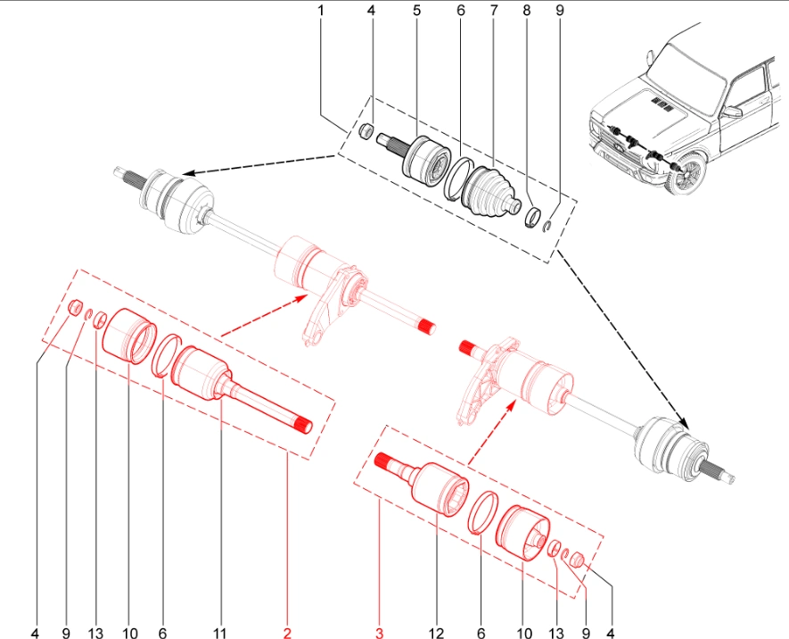 Штатный оригинальный комплект шарнира внутреннего для Lada Niva Travel без АБС.