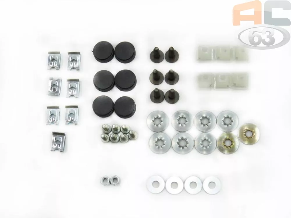Установочный комплект крепежа для жабо лобового стекла автомобилей Лада Приора. Данный комплект содержит весь нужный крепеж для установки, в комплекте 47 предметов.