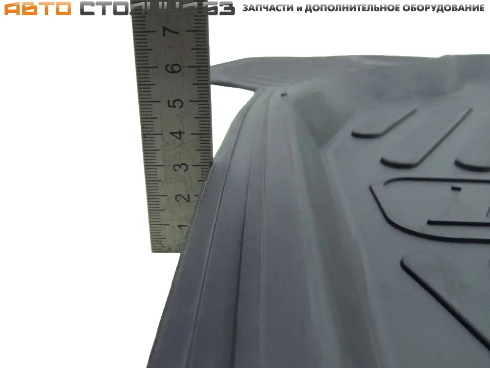 Коврик салона изготовлен из мягкой резины, имеет высокий бортик, препятствующий проливанию воды и грязи на ковролин пола.