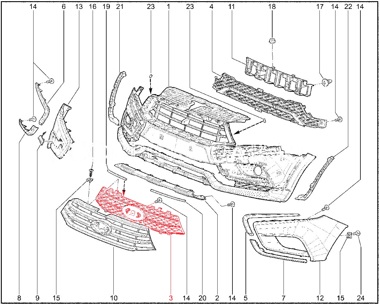 Решетка переднего бампера верхняя Лада Веста. Также может потребоваться Накладка (решетка радиатора) Лада Веста