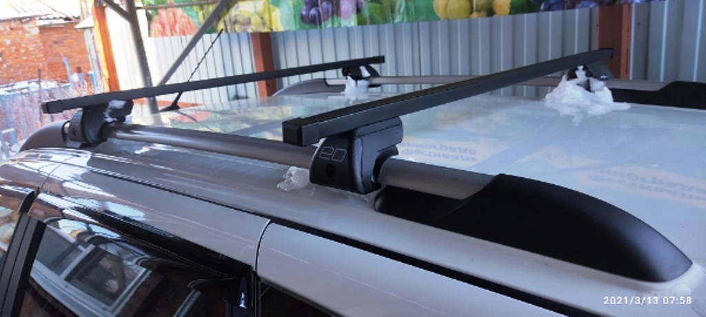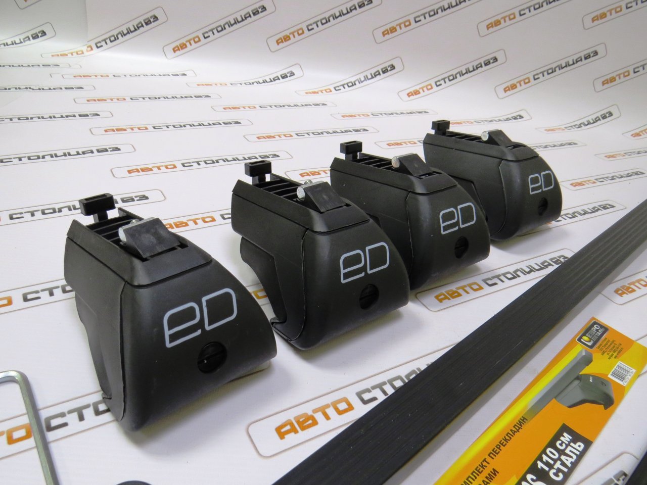 В комплекте крепления поперечин на рейлинги ED2-011F, поперечины стальные черного цвета длиной 110см ED7-210S.