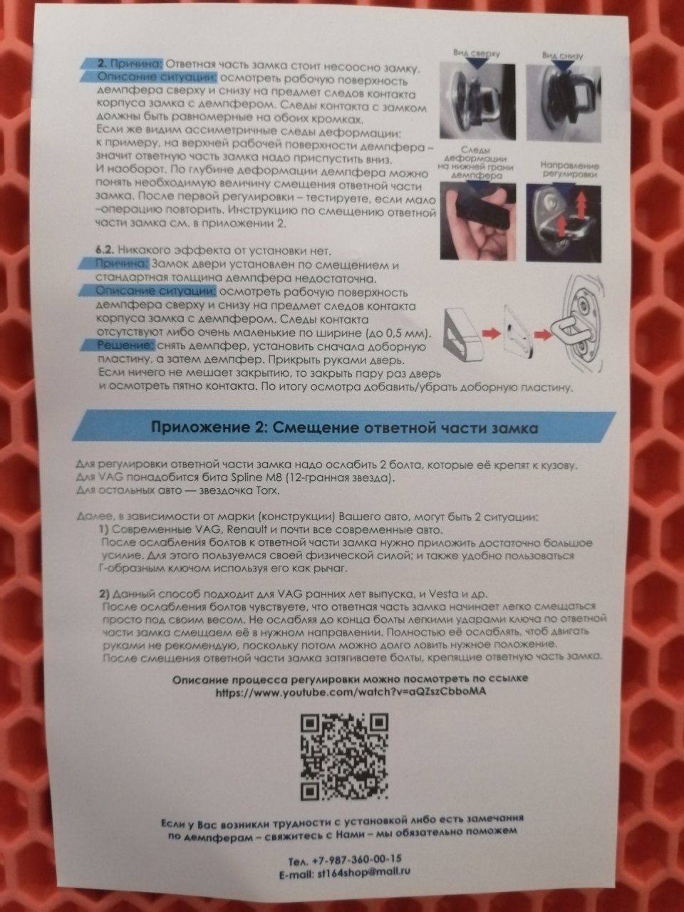 Если после установки демпферов дверь закрывается плохо, следует отрегулировать ответные части замков согласно инструкции по установке.