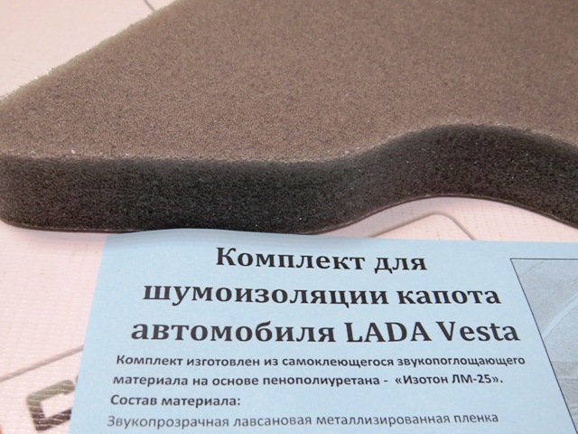 Шумоизоляционный комплект капота для автомобилей Лада Веста без штатной обивки капота.