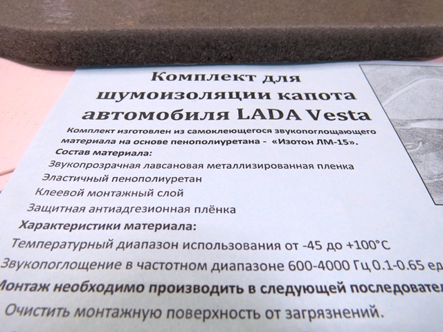 Рекомендуется совместная установка с комплектом виброизоляции капота Лада Веста.