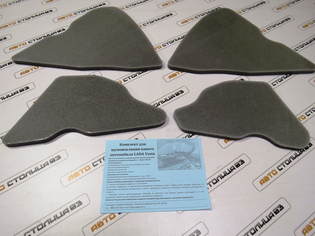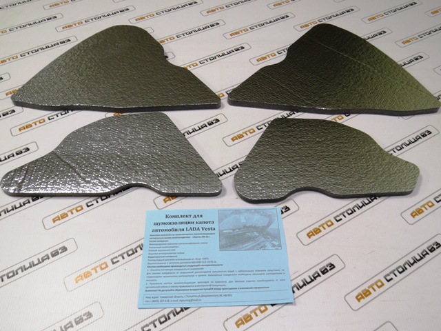 Для автомобилей без штатной обивки капота мы рекомендуем приобрести шумоизоляционный комплект капота Веста толщиной 25мм.