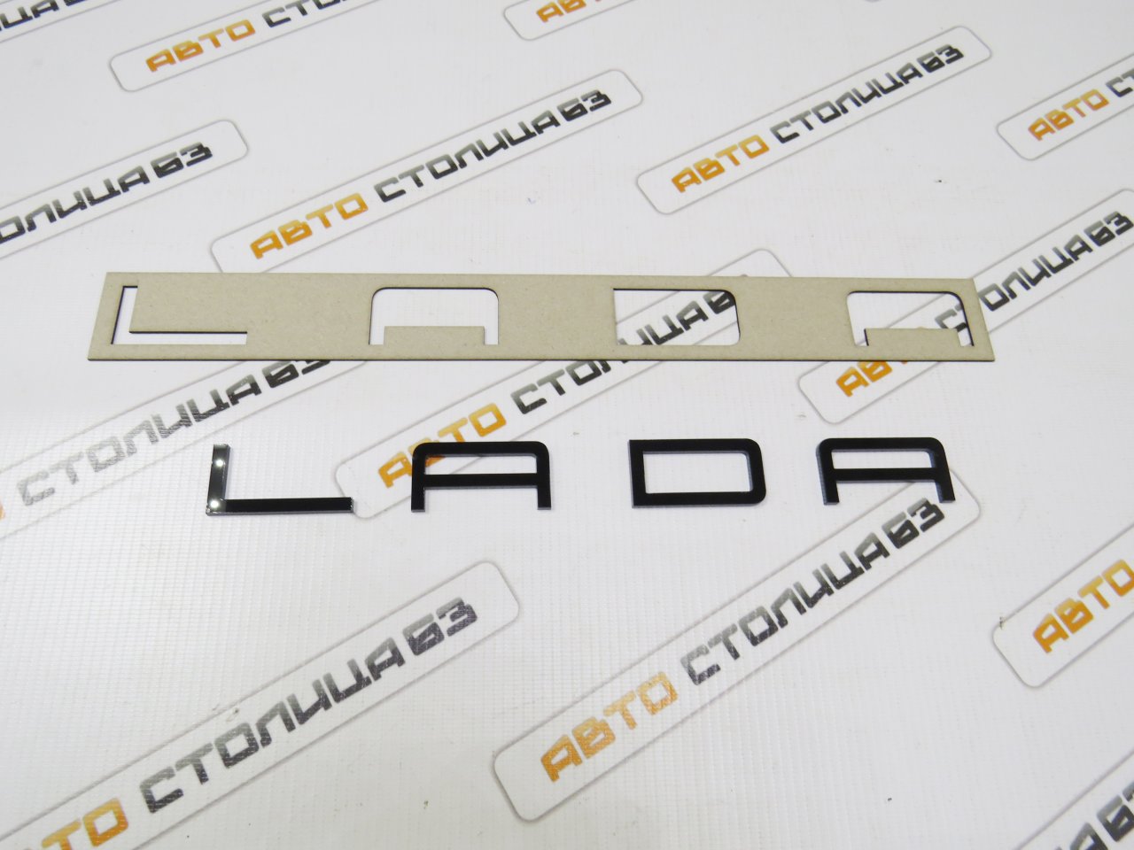 Орнамент ЛАДА (шильдик) в стиле Porsche в исполнении "черный глянец". Материал - термоустойчивый пластик. Клейкая основа - скотч 3M.