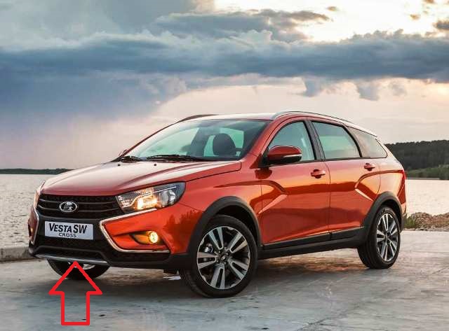 Штатная накладка переднего бампера нижняя для автомобиля Лада Веста SW Cross.