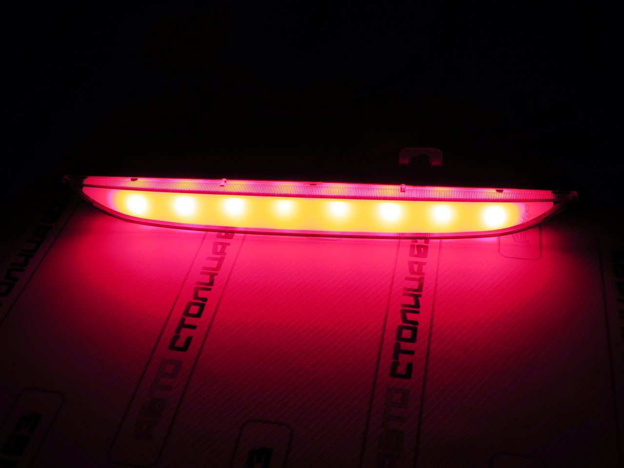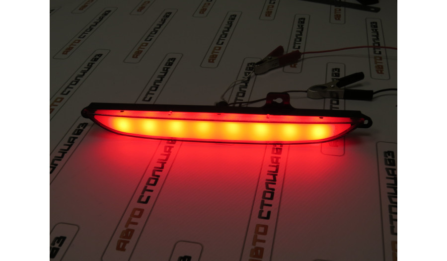 Красный светодиодный противотуманный фонарь в бампер для автомобилей Лада Гранта (лифтбек) и Веста.