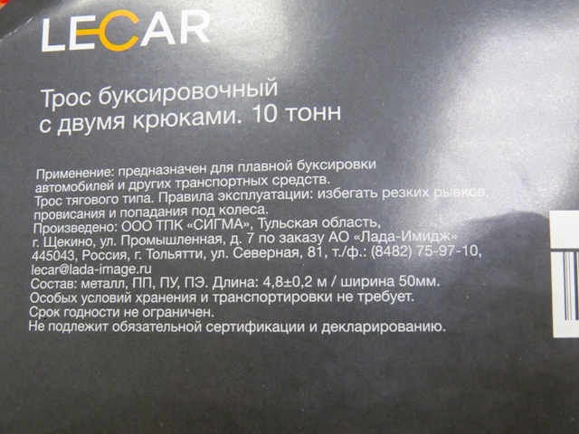 Трос предназначен для плавной буксировки автомобилей и других транспортных средств.