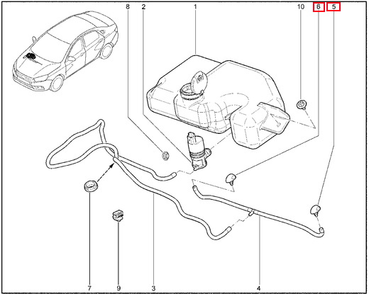 Форсунка омывателя лобового стекла Лада Веста и Иксрей.