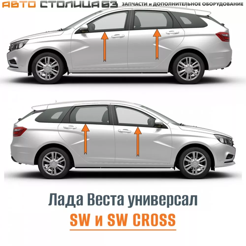 Уплотнители опускных стекол (бархотки) внешние для автомобиля Лада Веста в кузове универсал (SW и SW Cross), не подходят для автомобилей в кузове седан.