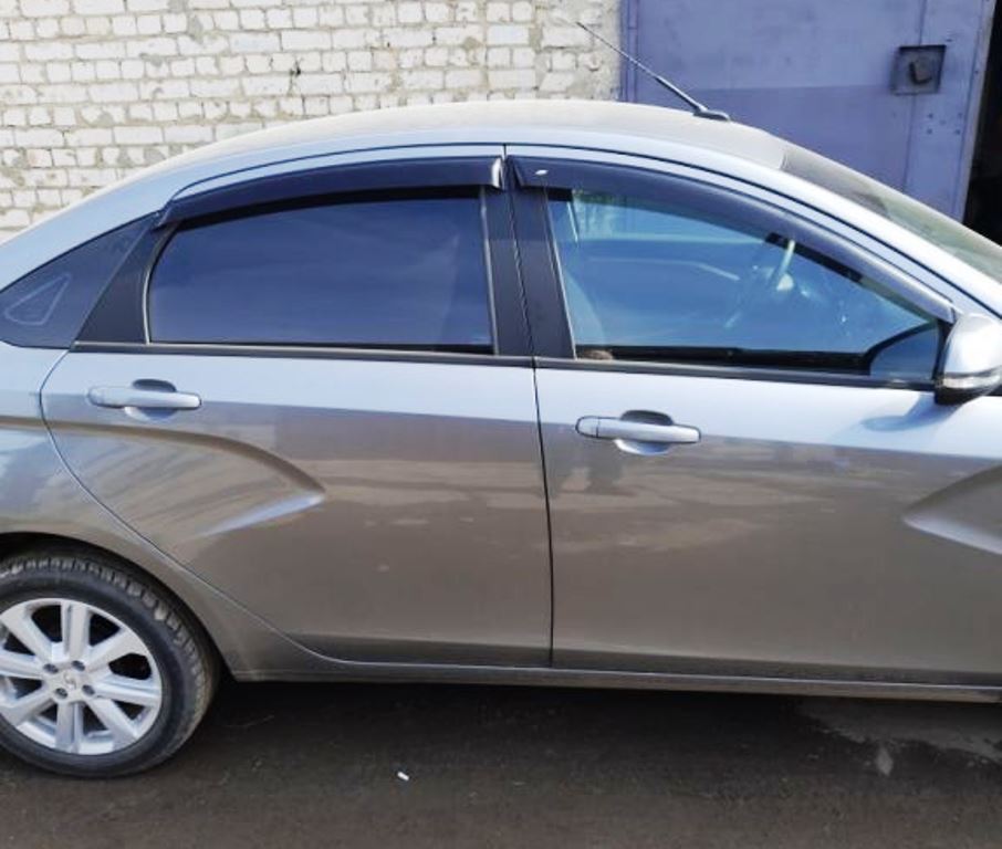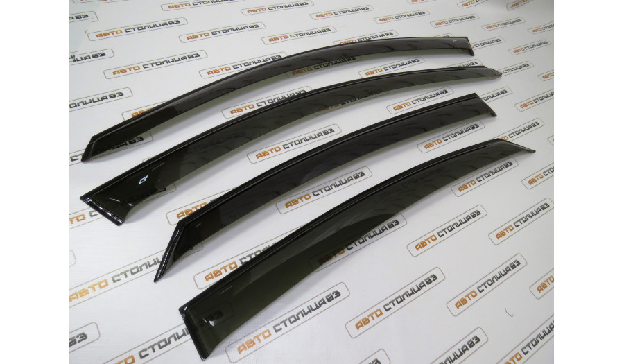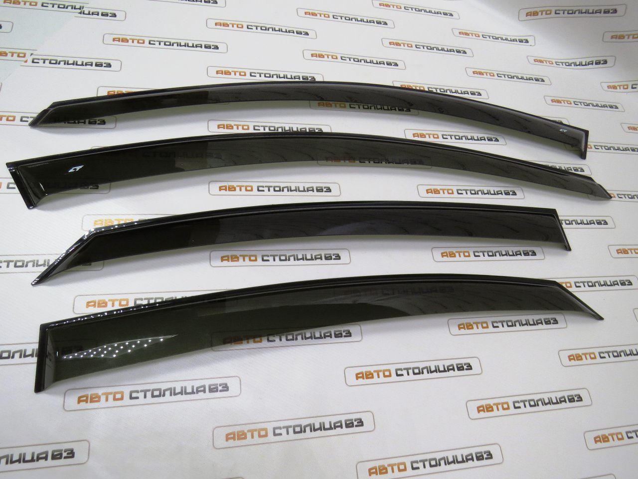 Накладные дефлекторы боковых стекол (ветровики) для автомобиля Лада Веста в кузове седан (седан и седан Кросс), комплект из 4 штук.