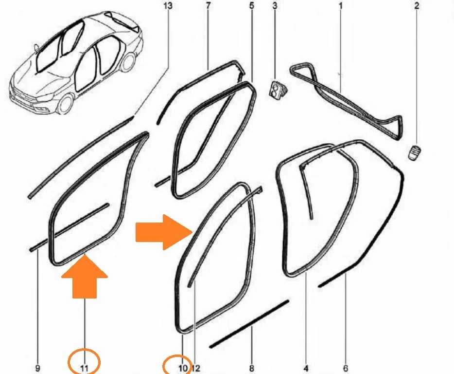 Аналог оригинального заводского уплотнителя передней двери для Лада Веста. Уплотнитель подходит на переднюю правую и переднюю левую дверь. Подходит для любого кузова Лада Веста.