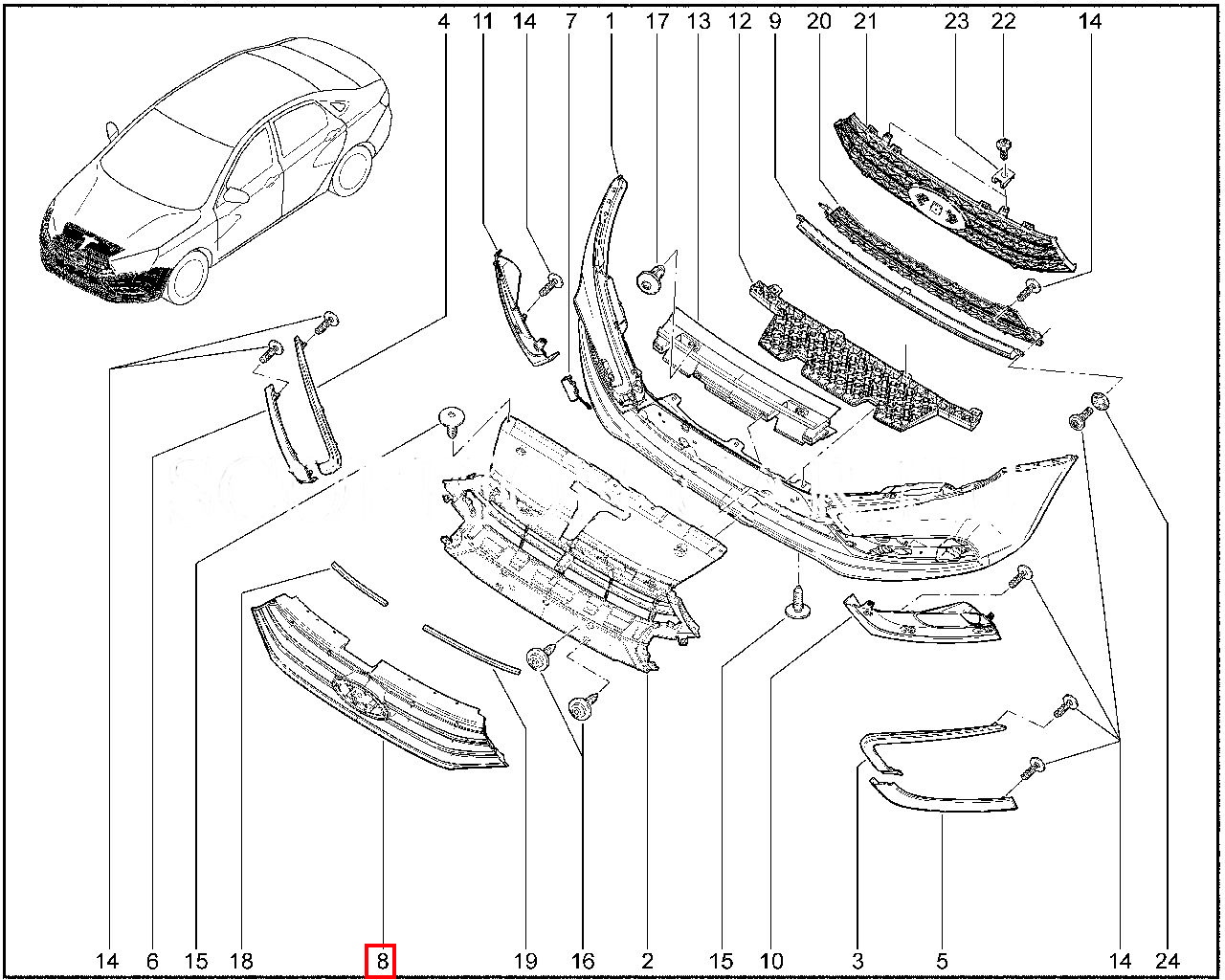 Накладка переднего бампера верхняя (решетка) для Лада Веста Люкс.