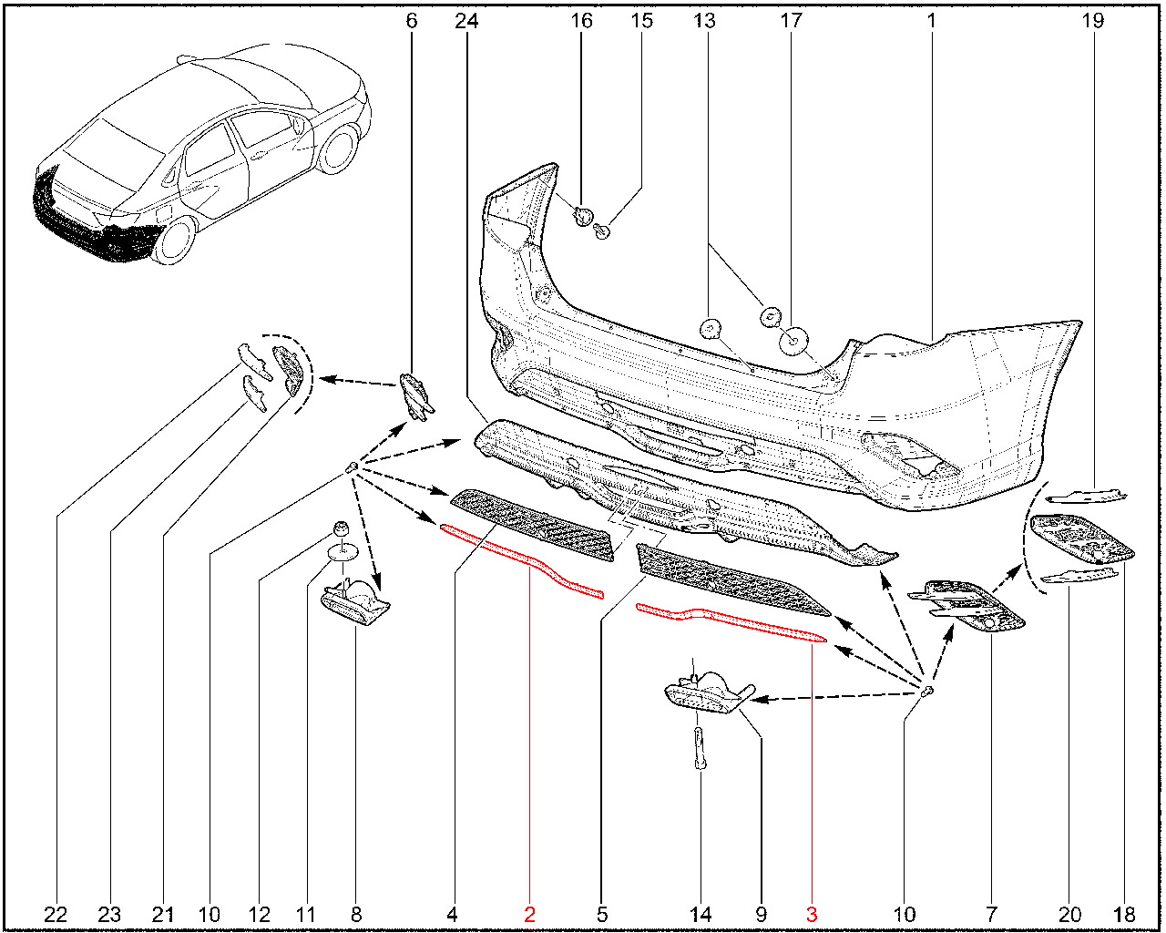 Накладка заднего бампера для Лада Веста Спорт и СпортЛайн.