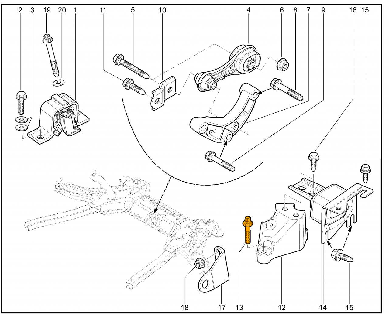 Болт M10х1,25х53 TORX E12 применяется в автомобилях Лада Веста, Иксрей и Ларгус для крепления кронштейна левой опоры подвески двигателя.