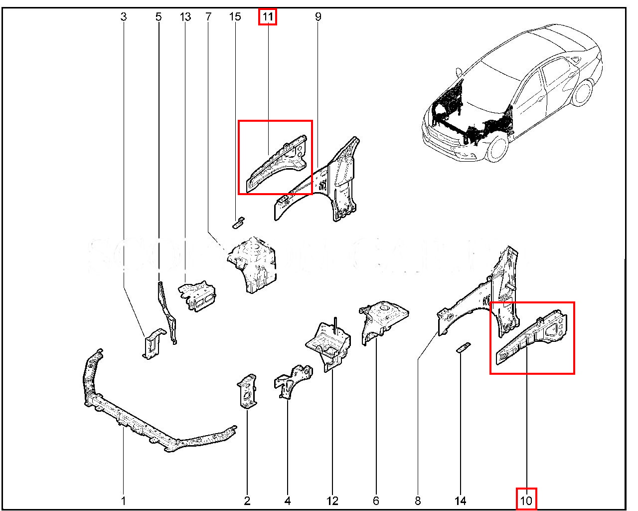 Усилитель брызговика верхний в сборе для Лада Веста.