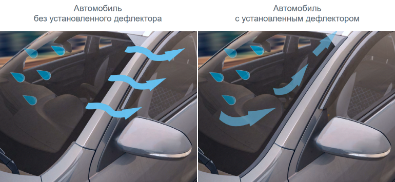 Основная функция дефлекторов лобового стекла — защита от попадания грязной воды с лобового стекла на боковые стекла, сохраняя обзор во время движениям.