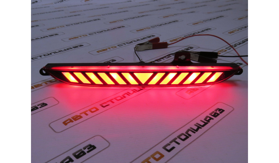 Фонарь противотуманный в задний бампер светодиодный для автомобилей Лада Гранта (лифтбек) и Веста (все виды кузова) с рисунком в виде полос.
