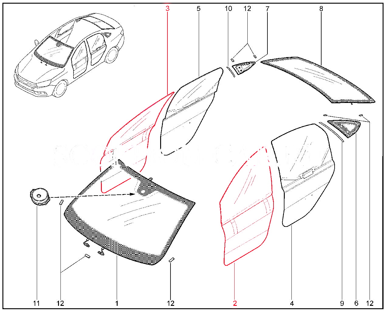 Стекло опускное передней двери с защитной пластиной в сборе для Лада Веста.