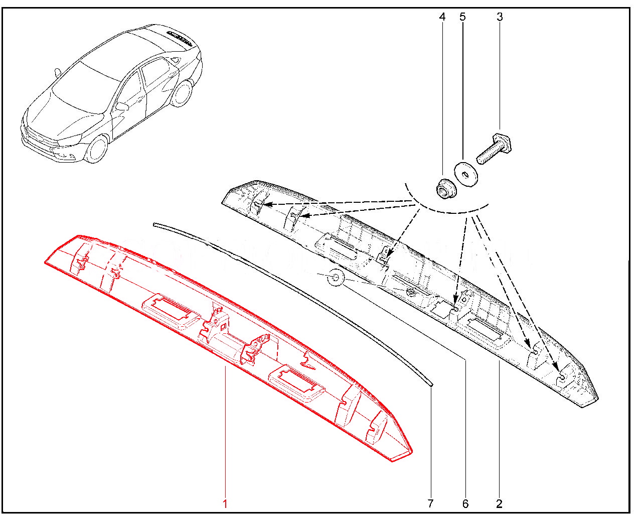Штатная накладка двери задка Лада Веста SW и SW Cross под кнопку открывания багажника без штатной камеры заднего вида.