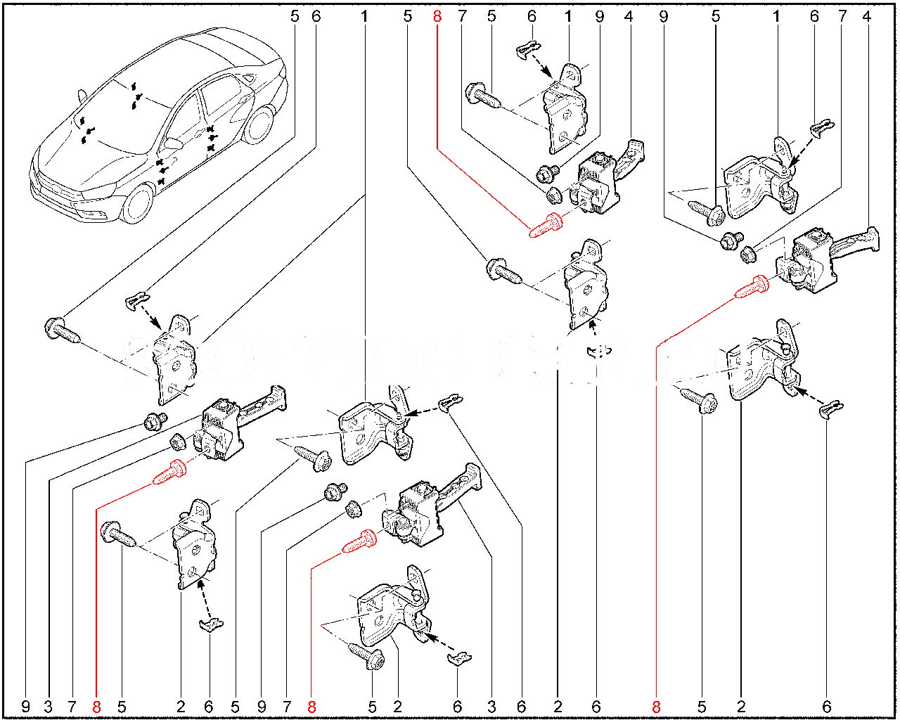 Винт М8х1,25, который используется для крепления ограничителя двери к кузову Лада Веста.