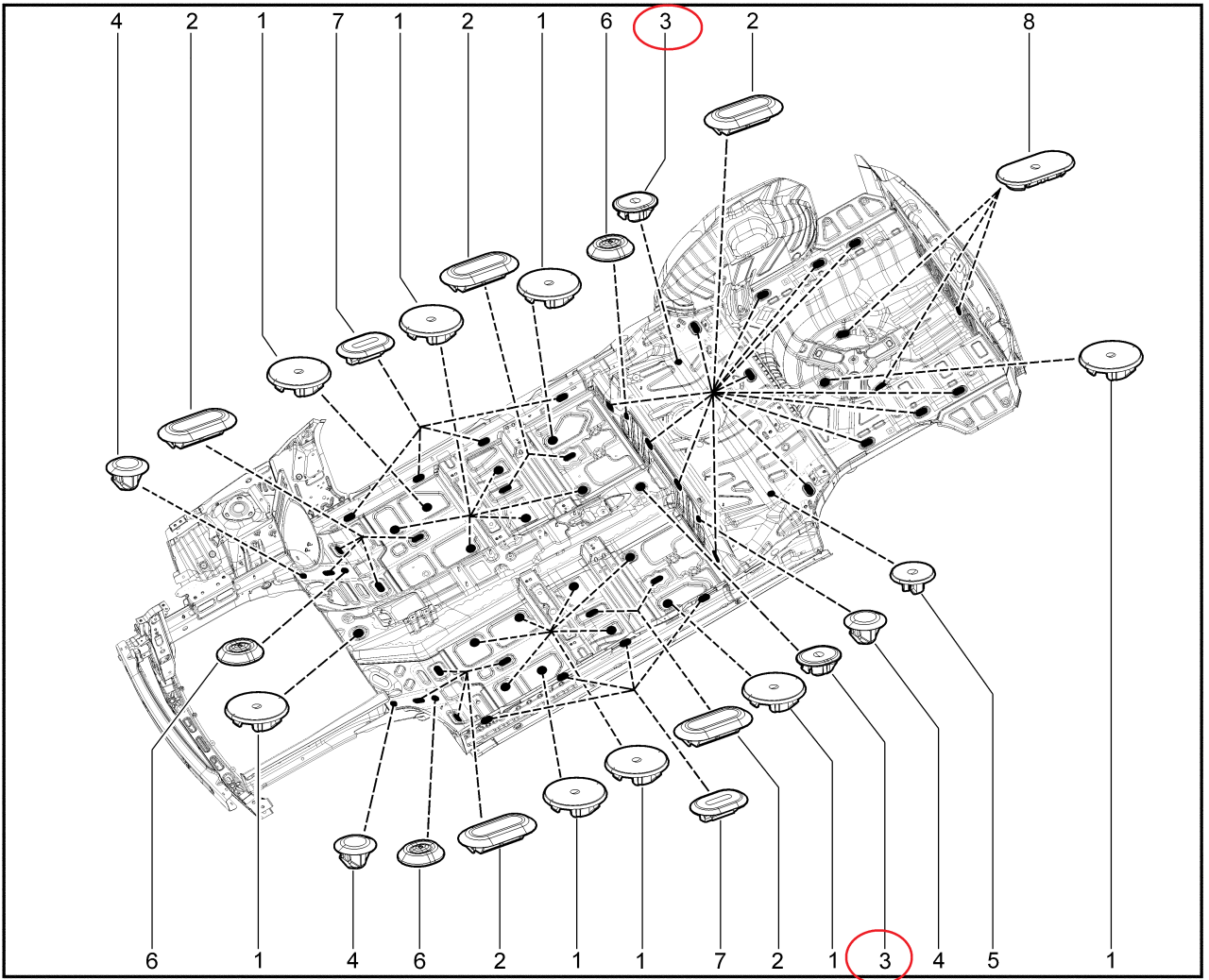 На схемах варианты установки заглушек мы обвели кругом, чтобы вам было проще и быстрее найти данную заглушку на рисунке.