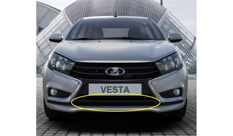 Штатная заводская накладка переднего бампера нижняя (глянцевая) для Лада Веста (седан и SW) в заводской окраске. Деталь идентична установленной на вашем автомобиле при его сборке на заводе.