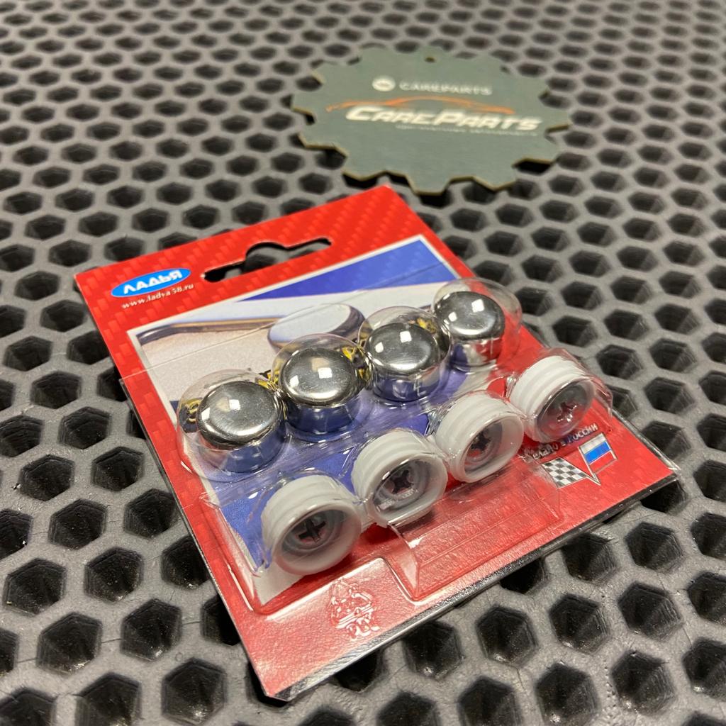 Универсальный комплект крепления номерного знака саморез с хромированной заглушкой.
