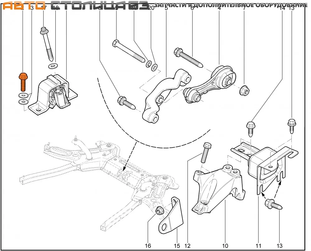 Болт М10*35*1.5 для крепления правой опоры двигателя в нижней части для автомобилей Лада Веста (двигатели ВАЗ 21129 и 21179) и Ларгус (двигатели ВАЗ 11189 и 21129).