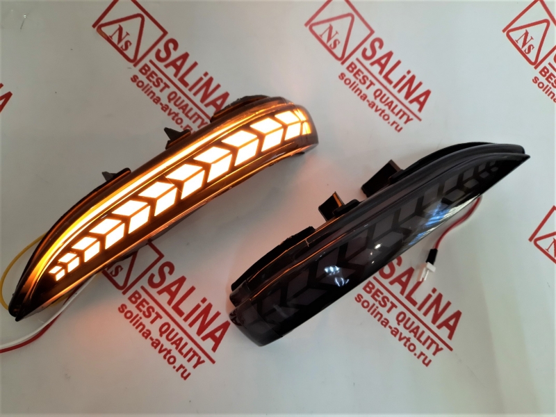 Динамические повторители МУЛЬТИ-ПЛАЗМА, с рисунком "СТРЕЛКИ" в зеркала старого образца на Лада Веста.