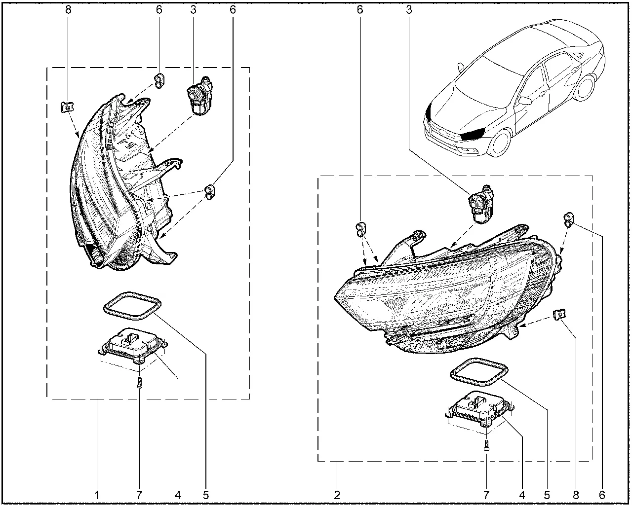 Штатная блок фара передняя для нового поколения Лада Веста (Lada Vesta NG).