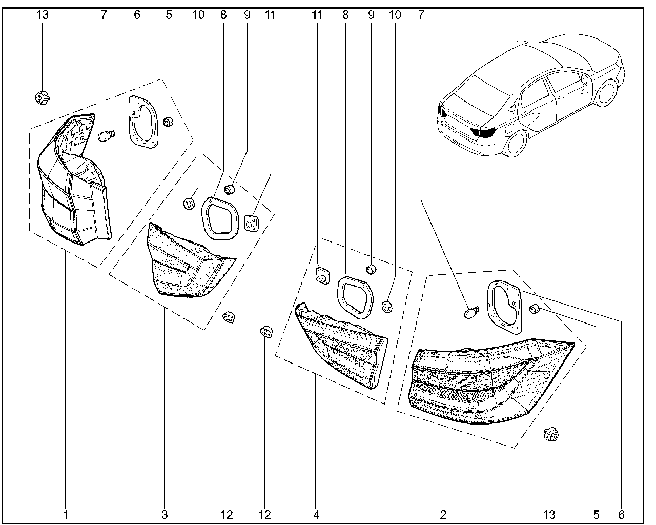 Штатный фонарь задний для нового поколения Лада Веста (Lada Vesta NG).