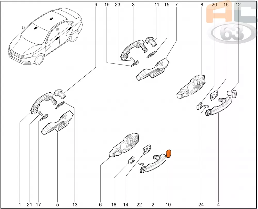 Заглушка замка передней левой двери для Лада Веста до 2022г. Заглушка имеет вырез под ключ. Поставляется неокрашенной. Устанавливается в штатное место взамен сломанной или потерянной родной заглушки.