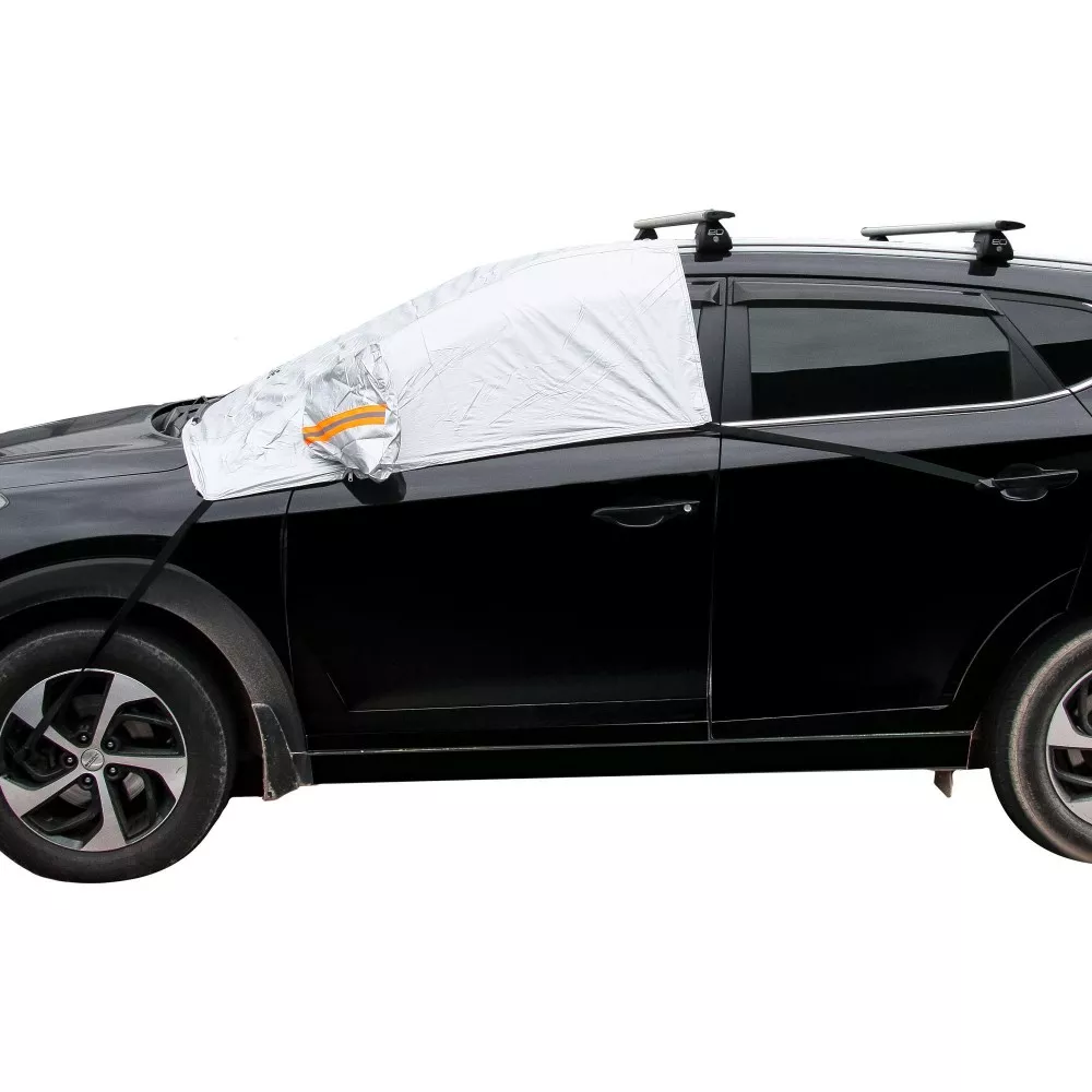 Практичный чехол на лобовое стекло и передние боковые окна защищает припаркованный автомобиль от оседающего на него снега, инея, льда зимой и солнечных лучей, грязи, пыли, тополиных почек летом.