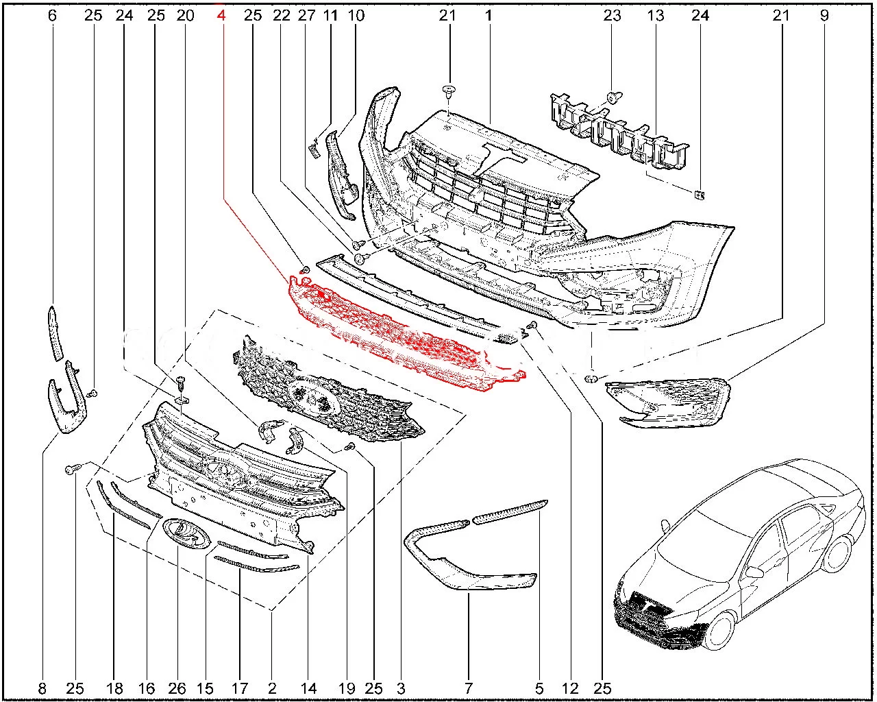 Штатная решетка бампера нижняя для нового поколения Лада Веста.