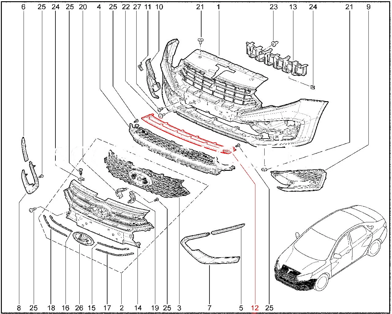 Штатная накладка переднего бампера нижняя для нового поколения Лада Веста.