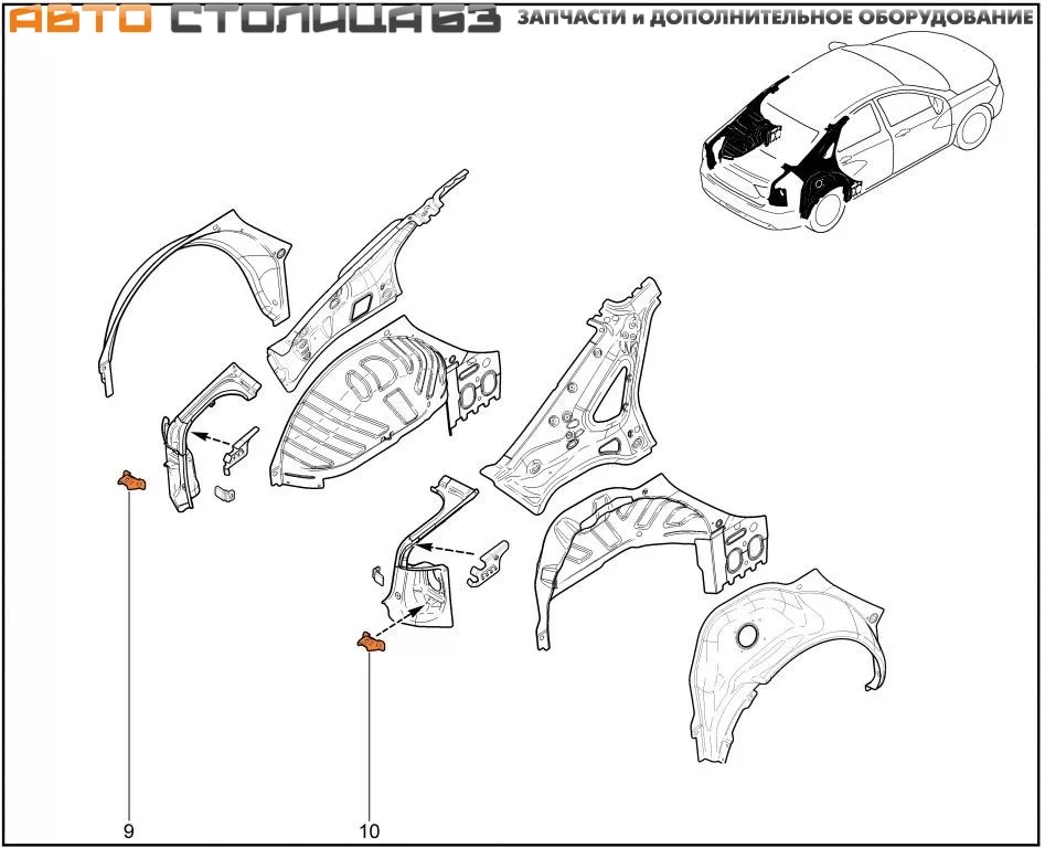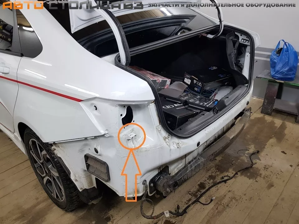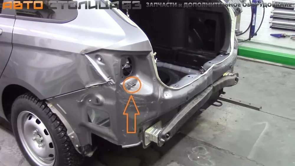 Данный кронштейн установлен на кузов при помощи точечной сварки, является креплением бампера, которое находится под фонарем.
