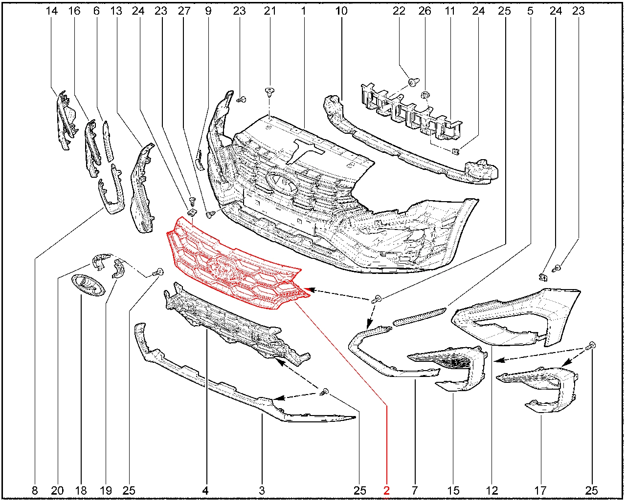 Штатная накладка переднего бампера средняя для нового поколения Лада Веста Кросс седан и универсал.