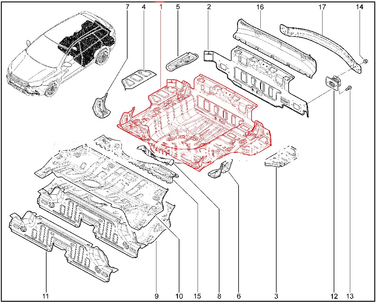 Панель пола задняя в сборе для нового поколения Лада Веста универсал.