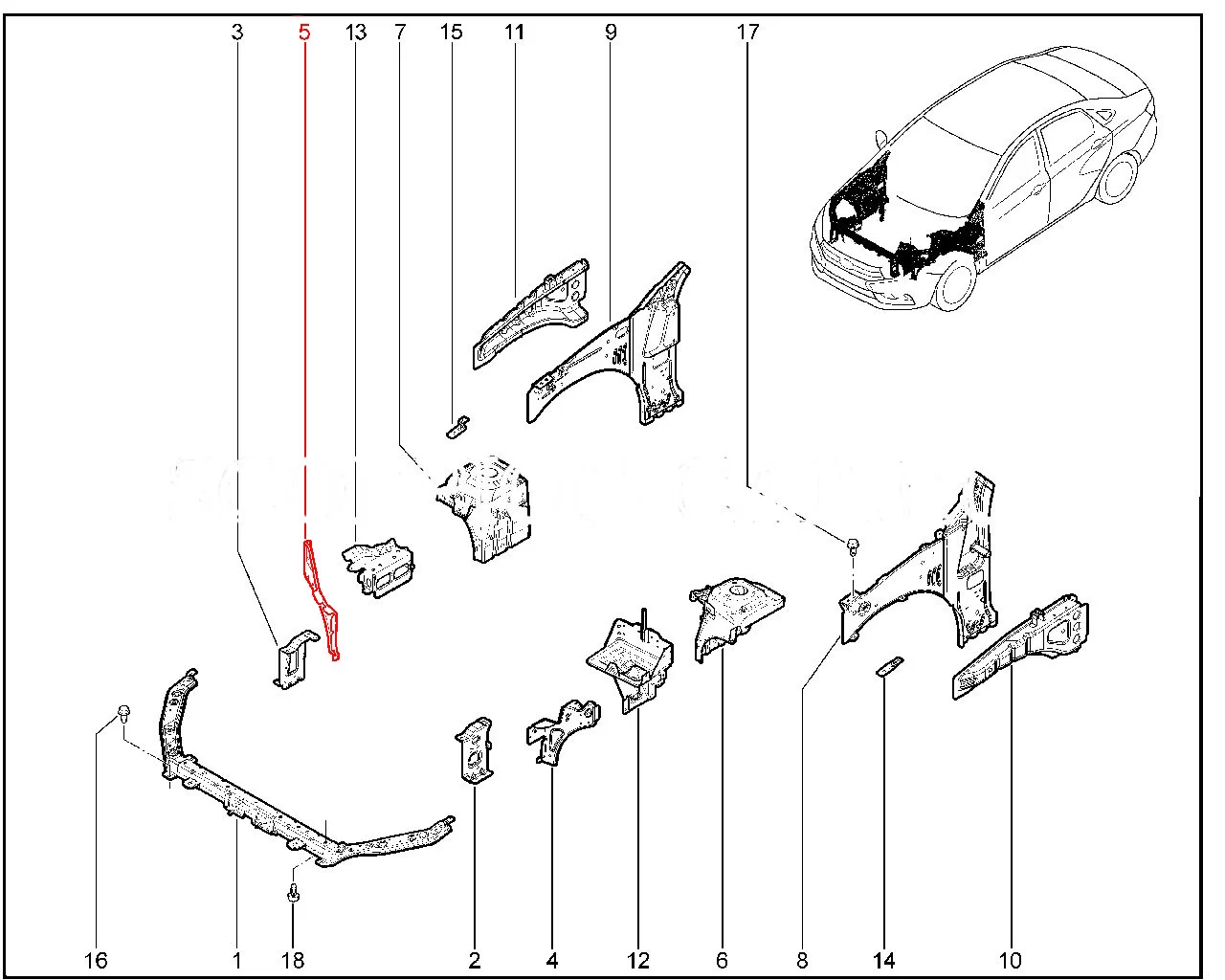 Штатный соединитель лонжерона и брызговика правый в сборе (катафорез) для Лада Веста.