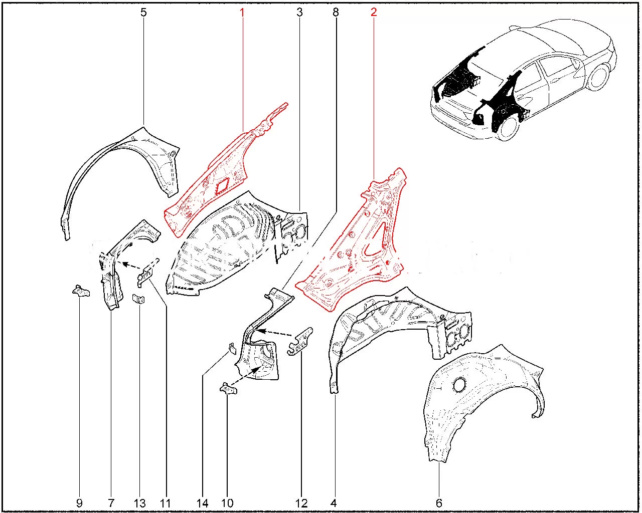 Панель боковины угловая внутренняя (катафорез) для Лада Веста седан.