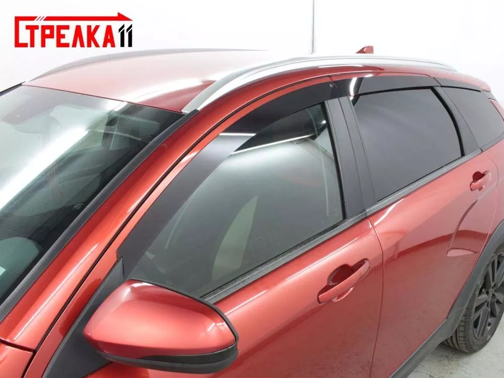 Аэродинамический дефлектор на окна автомобиля 2D от компании "Стрелка11" не выступает за пределы кузова и не препятствует потокам воздуха, не создаёт дополнительных шумов, а также сливается с автомобилем как единое целое и выглядит на автомобиле как его неотъемлемая часть, с фронтальной и тыльной стороны совершенно невидим.