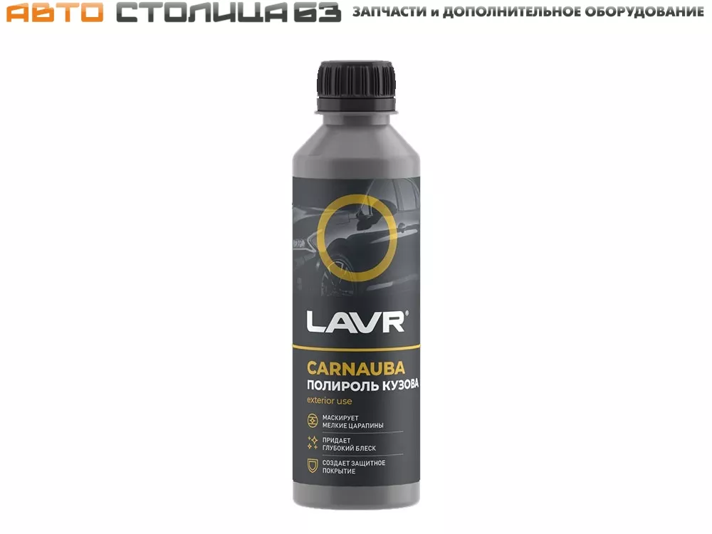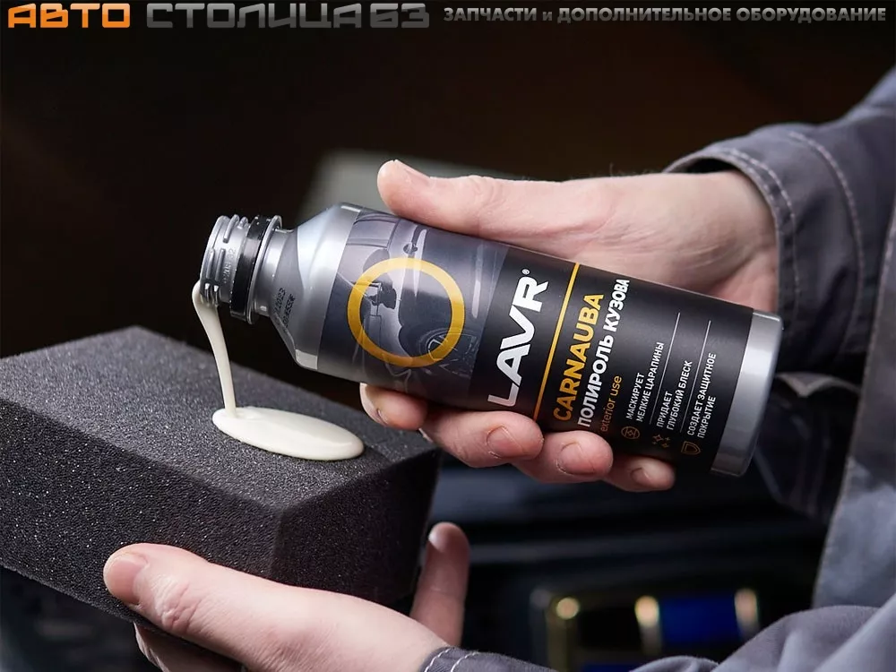 Полироль кузова с карнаубским воском LAVR – специализированное средство для обработки лакокрасочных поверхностей автомобилей и мотоциклов. Улучшает внешний вид и придает дополнительные защитные свойства. Воск карнаубской пальмы обеспечивает прочную защитную пленку и глянцевый блеск, а также защищает обработанную поверхность от выгорания и воздействия дорожных загрязнителей.