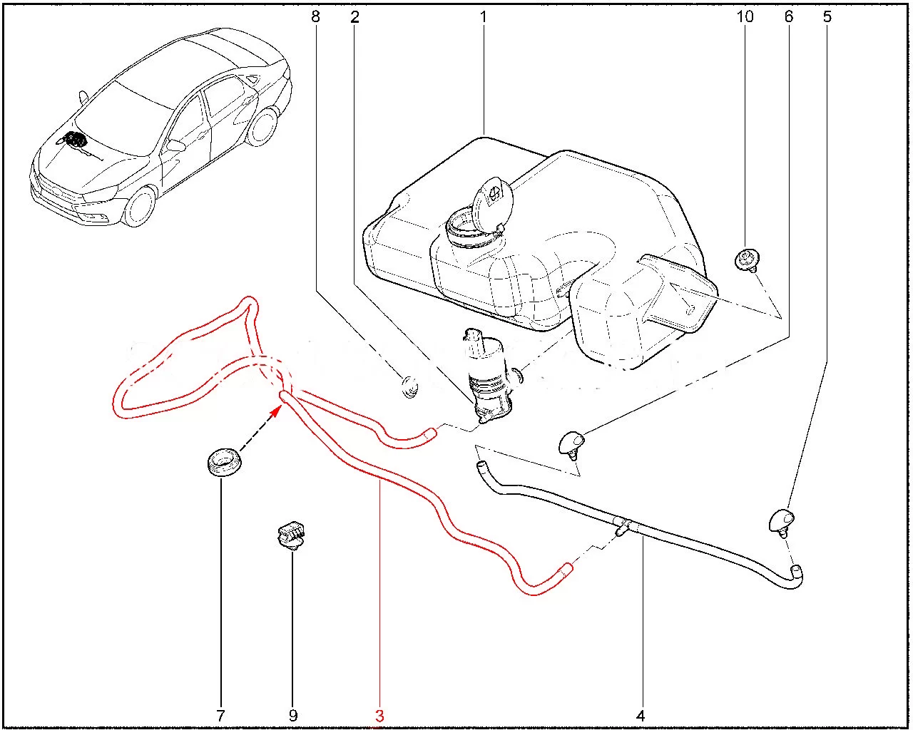 Трубка от насоса омывателя к тройнику жиклеров для Лада Веста.